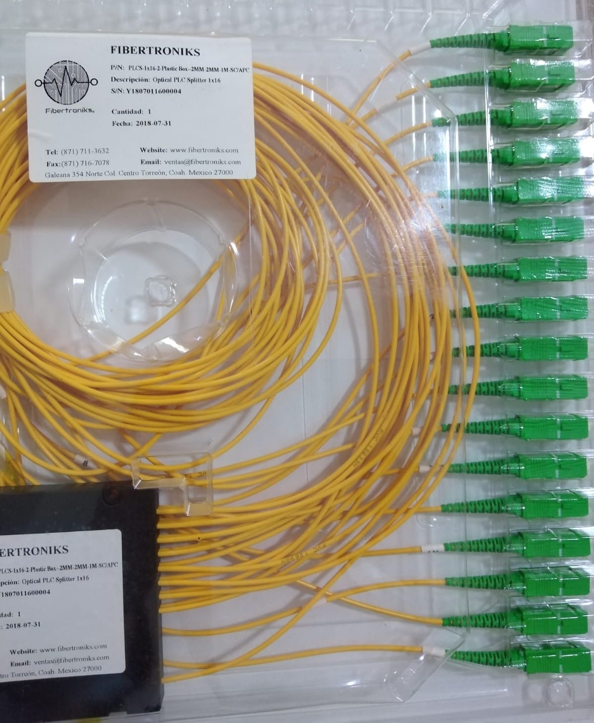 1×16 Splitter de fibra PLC, tipo de caja ABS, monomodo, SC/APC
