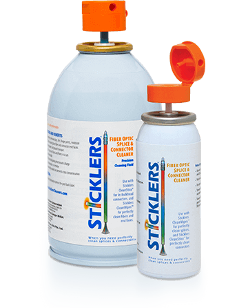 The Sticklers™ Fiber Optic Splice & Connector Cleaning Fluid is a non-flammable fiber optic cleaning fluid that doesn’t use alcohol or water. It’s specifically engineered for fiber optic connectors.